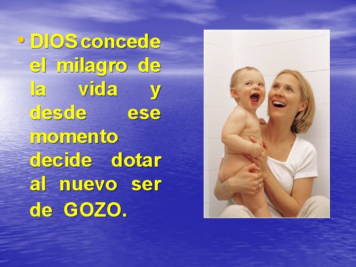 • DIOS concede el milagro de la vida y desde ese momento decide dotar al nuevo ser de GOZO.