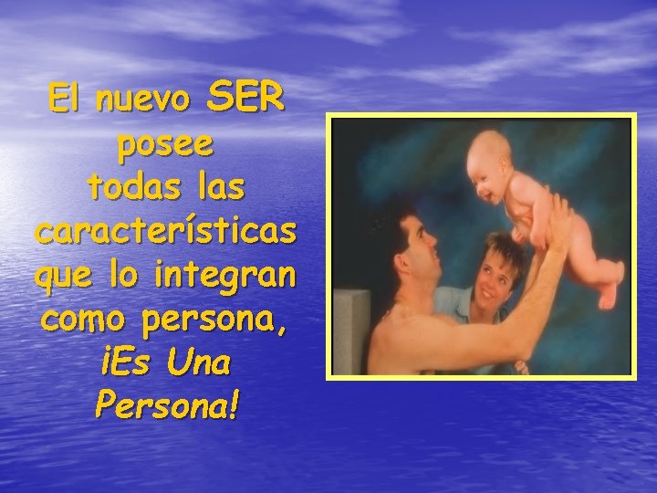 El nuevo SER posee todas las características que lo integran como persona, ¡Es Una Persona!