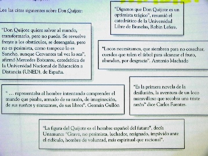 Agenda: w “Don Quijote”; Introducción w Los sonetos de Cervantes w Leer cap. 1 pg. 476 juntos y discutir preg. de Interpretación. w Tarea: Escudo y leer cap. 2 con anotaciones y esquema w Tarea de Cap. 2 pg. 480 lectura y anotación y escudo; apuntes de History Channel w History Channel: Don Quijote