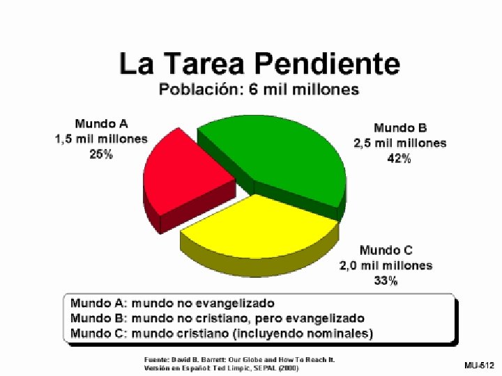 SABIAS QUE? Un tercio de la gente sobre la tierra dice ser cristiana. Un tercio es no cristiano, que vive en etnias ya alcanzadas. Un tercio es no cristiano que vive en etnias no alcanzadas.