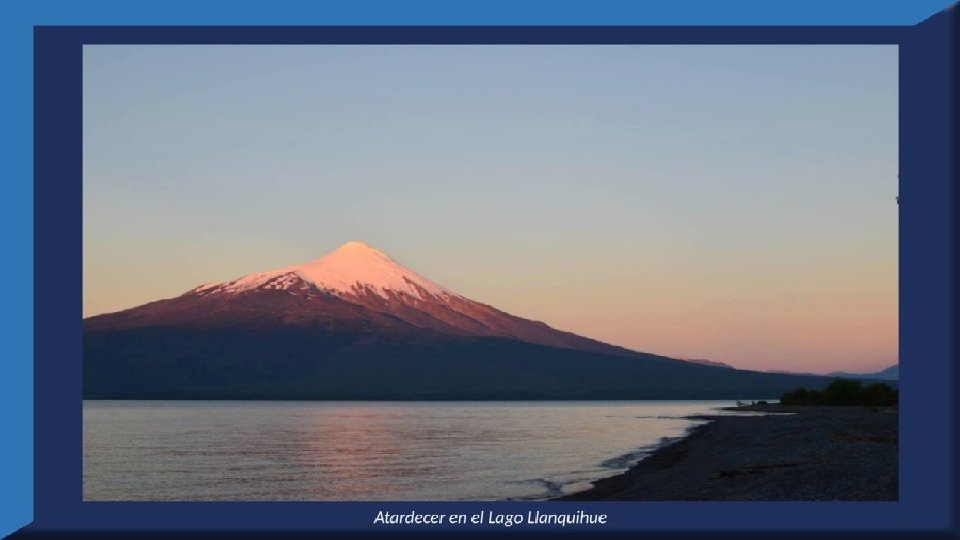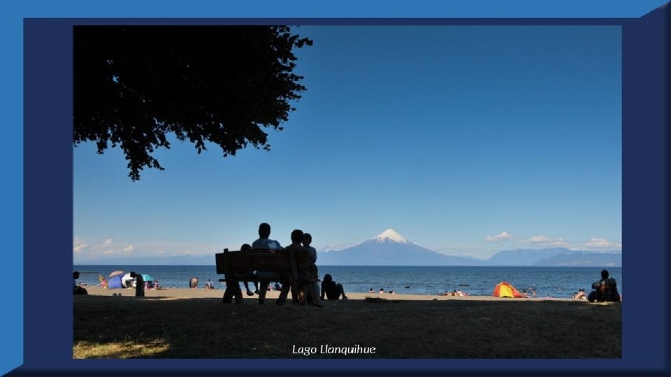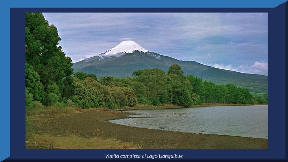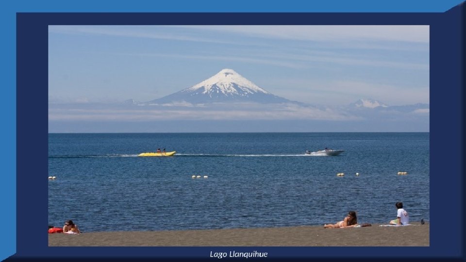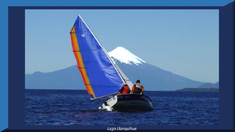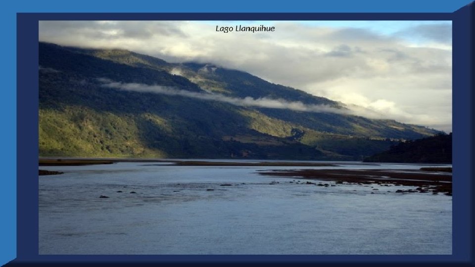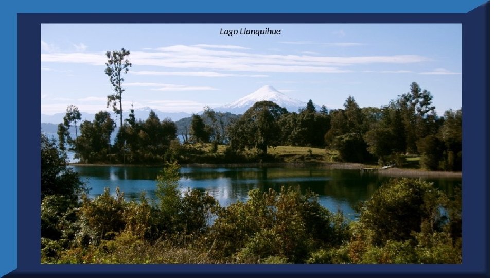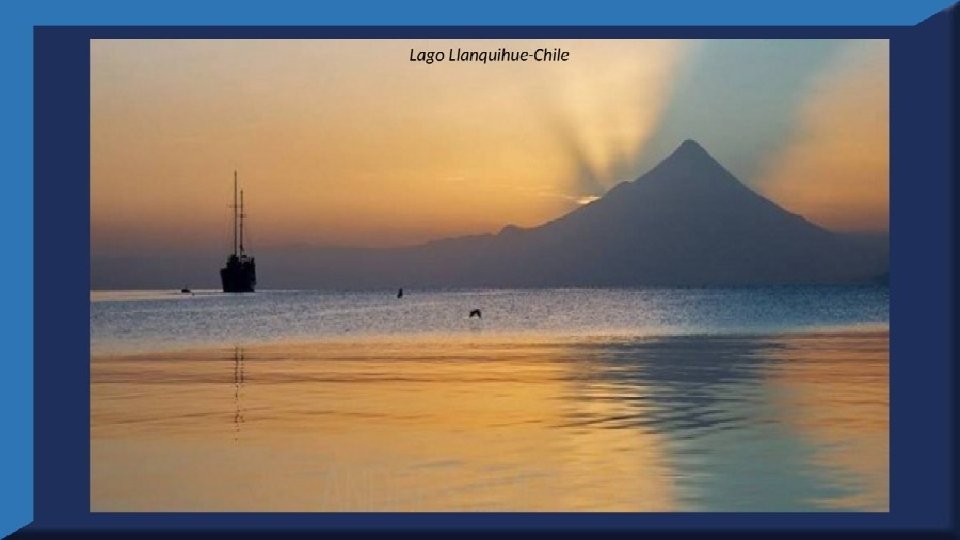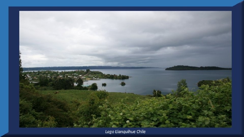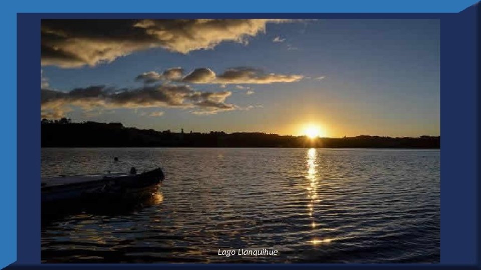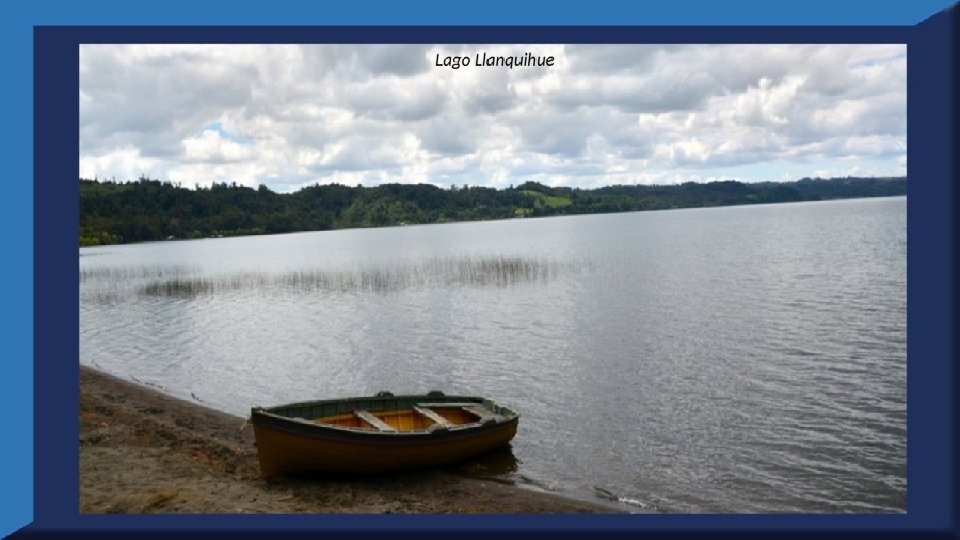 El lago Llanquihue, es el mayor de los lagos de Chile y está situado en el departamento á que da su nombre. Su mayor extensión es de este a oeste. entre el puerto del Volcán y el de Philippi, que mide 43 km; siendo la de Norte á Sur. , entre el puerto de Octay y Puerto Varas, de 41 km. Baña por el oriente la base del volcán de Osorno al cual se ve resaltar majestuosamente en toda su altura desde casi todos los puntos de su superficie. Se rodea de costas desiguales por senos de moderada internación que forman puertos y caletas para embarcaciones menores, como los ya mencionados y los del Frutillar, de Domeyko, de Pérez Rosales, de Cox, de Fonck. Sus márgenes, de suaves colinas en general, se visten de abundante vegetación y arbolado, y ofrecen tierras labraderas y fértiles que ostentan algún cultivo. Sus aguas son puras y dulces, y de un hermoso azul marino, debido á la notable hondura de su fondo; suministrándoselas en cuantiosa copia las frecuentes lluvias y los arroyos de las alturas circunvecinas que caen en él, algunos en vistosas cascadas. Desagua por su lado sudoeste á 9 km al NO. de Puerto Varas dando origen al río Maullín. Uno de los destinos turísticos privilegiados de Chile son las ciudades de Frutillar y Puerto Varas, ubicadas cerca de Puerto Montt. También existen otros pueblitos como Puerto Octay, Llanquihue, Las Cascadas y Ensenada, todos estos lugares tienen en común una cosa: el maravilloso lago Llanquihue (salvo Puerto Montt, claro). Creó: Jeremías Para: mis pps Música: Anhelos-Alfredo Gutiérrez