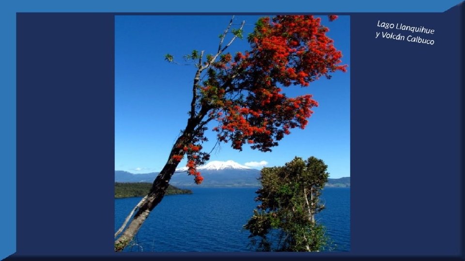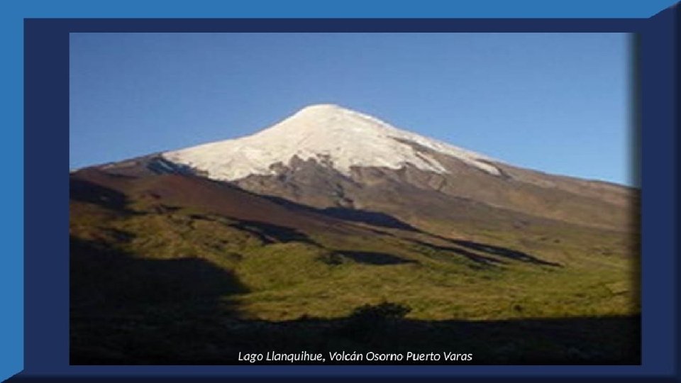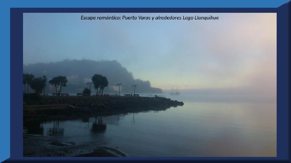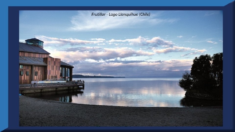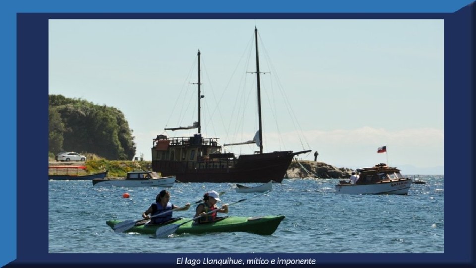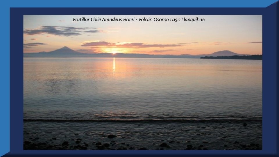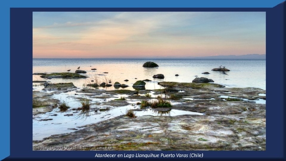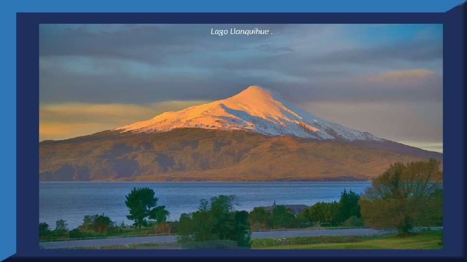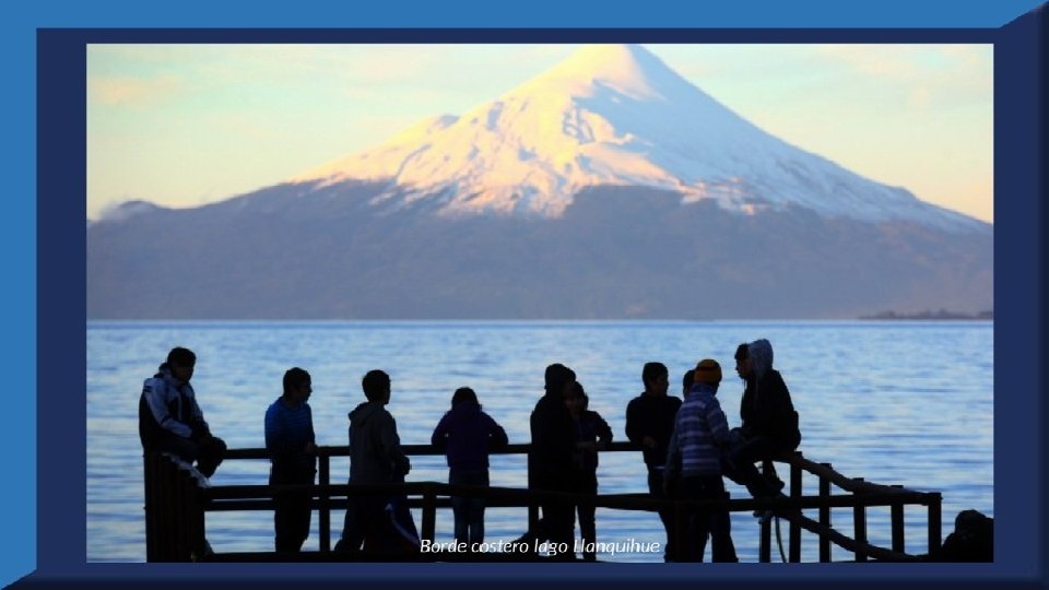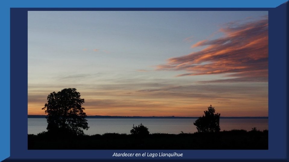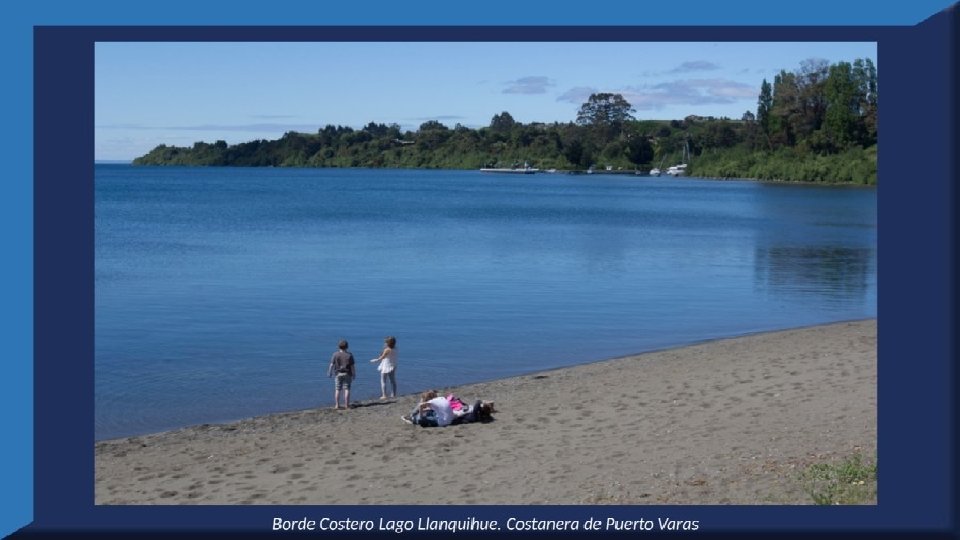 El lago Llanquihue, es el mayor de los lagos de Chile y está situado en el departamento á que da su nombre. Su mayor extensión es de este a oeste. entre el puerto del Volcán y el de Philippi, que mide 43 km; siendo la de Norte á Sur. , entre el puerto de Octay y Puerto Varas, de 41 km. Baña por el oriente la base del volcán de Osorno al cual se ve resaltar majestuosamente en toda su altura desde casi todos los puntos de su superficie. Se rodea de costas desiguales por senos de moderada internación que forman puertos y caletas para embarcaciones menores, como los ya mencionados y los del Frutillar, de Domeyko, de Pérez Rosales, de Cox, de Fonck. Sus márgenes, de suaves colinas en general, se visten de abundante vegetación y arbolado, y ofrecen tierras labraderas y fértiles que ostentan algún cultivo. Sus aguas son puras y dulces, y de un hermoso azul marino, debido á la notable hondura de su fondo; suministrándoselas en cuantiosa copia las frecuentes lluvias y los arroyos de las alturas circunvecinas que caen en él, algunos en vistosas cascadas. Desagua por su lado sudoeste á 9 km al NO. de Puerto Varas dando origen al río Maullín. Uno de los destinos turísticos privilegiados de Chile son las ciudades de Frutillar y Puerto Varas, ubicadas cerca de Puerto Montt. También existen otros pueblitos como Puerto Octay, Llanquihue, Las Cascadas y Ensenada, todos estos lugares tienen en común una cosa: el maravilloso lago Llanquihue (salvo Puerto Montt, claro). Creó: Jeremías Para: mis pps Música: Anhelos-Alfredo Gutiérrez