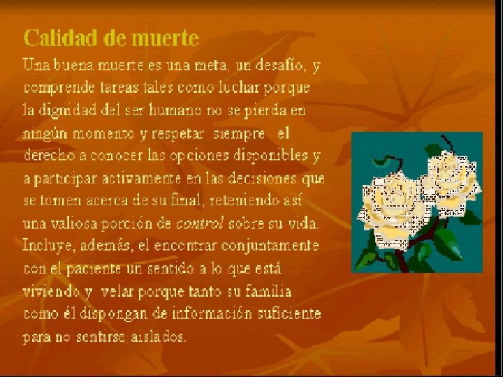 l La confrontación con la muerte, los moribundos y el duelo es una realidad cotidiana para los médicos en su práctica clínica. l La muerte es uno de los problemas esenciales del hombre y presenta un intenso temor. El médico con frecuencia no sabe que hacer ni qué decir ante la muerte de sus pacientes, por ello es un gran desafío para él aprender a manejar esta situación con: l OPTIMISMO l PRUDENCIA l ESPIRITUALIDA.