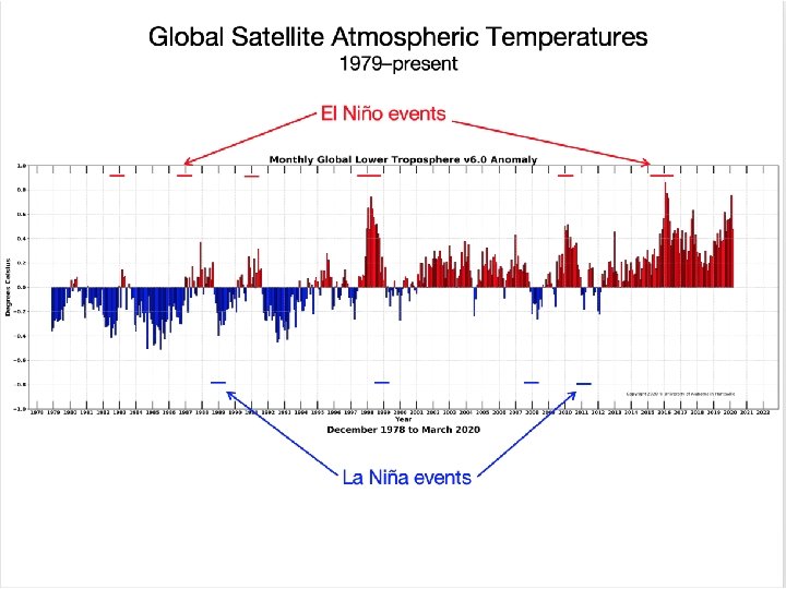 El Niño and the Southern Oscillation (ENSO) El Niño: 5 consecutive months of sea-surface temperatures in region “Nino 3. 4” at least 0. 5°C above average (La Niña: 0. 5°C below average) Southern Oscillation: Tahiti surface pressure minus Darwin surface pressure Darwin Tahiti positive = strong easterly trades negative = weak easterly trades or westerlies