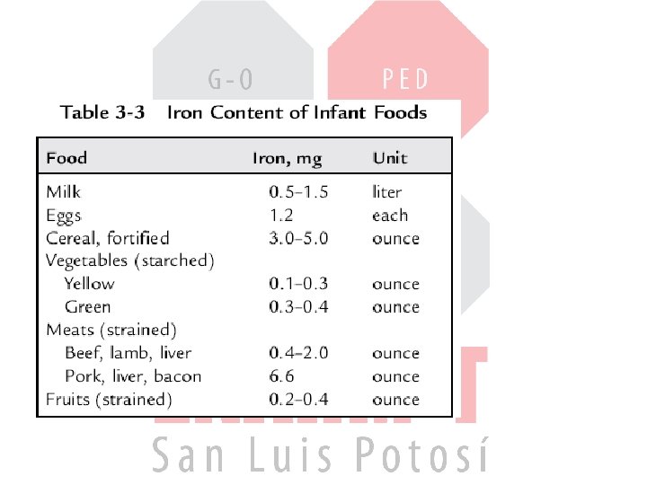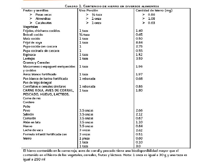 • El RN es alimentado exclusivamente con leche hasta los 4 -6 m de vida. • Las formulas a base de leche de vaca y la leche materna contienen <1. 5 mg/1000 cal (0. 5 – 1. 5 mg/L) • Las formulas maternizadas fortificadas 12 mg/L • El hierro de la leche materna se absorbe 50% y el de la leche de vaca 10%