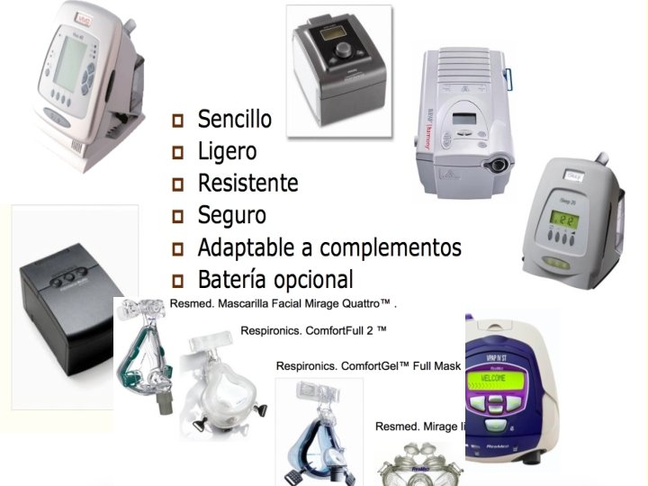 Ventilación asistida Mejora la permeabilidad de la VAS Mejora ventilación alveolar Mejora la complianza pulmonar Previene la formación de atelectasias , disminuye ingresos Disminuye el trabajo de los musculos respiratorios Revierte la hipercarbia e hipoxemias nocturnas Mejora la calidad del sueño Enlentece el deterioro de la función pulmonar y de la deformamidad toracica Revierte los síntomas debidos a hipoventilación y SAHOS Mejora la calidad de vida Disminuye la morbi mortalidad