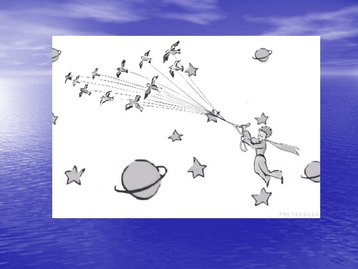 CAPÍTOL DOS • El sisè planeta era un planeta deu vegades més gran. Hi vivia un senyor vell que escrivia uns llibres immensos. - Mira! Aquí tenim un explorador!- Va exclamar en veure el petit príncep. El petit príncep es va asseure sobre la taula i va respirar una mica. Ja havia viatjat tant!
