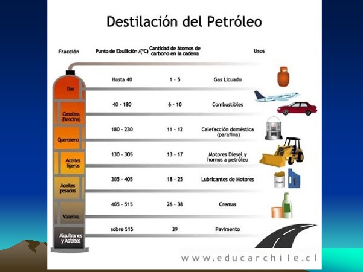 ¿De dónde proviene el petróleo? • Proviene de la descomposición del plancton marino, vegetal y animal, hundido en tiempos lejanos en los lodos del fondo marino. • DEFINICIÓN: El petróleo en bruto es un líquido viscoso que se compone de una mezcla de hidrocarburos a los que se han adherido agua y residuos sólidos.