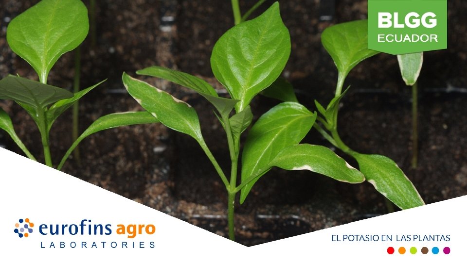 • La Deficiencia de Potasio en Plantas La deficiencia de potasio puede causar anormalidades en la planta. Por lo general estas anormalidades están relacionadas con el crecimiento. Clorosis – Color amarillamiento y quemaduras marginales en las hojas medias y bajas de la planta. Crecimiento lento o retrasado – Como el potasio es un catalizador importante de crecimiento en las plantas, las plantas deficientes en potasio tendrán un retraso en el crecimiento. Tolerancia disminuida a los cambios de temperatura y a estrés hídrico – La deficiencia de potasio se traduce en menos agua que circula en la planta. Como resultado, la planta será más susceptible al estrés hídrico y a cambios de temperatura.