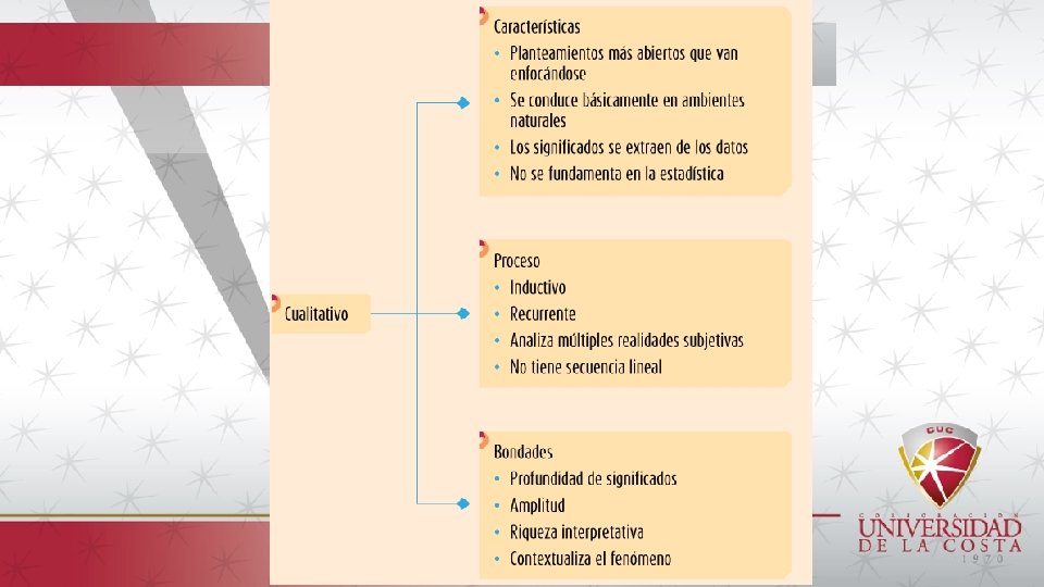 LOS OBJETIVOS 1. Usar palabras que sugieran un trabajo exploratorio (“razones”, “motivaciones”, “búsqueda”, “indagación”, “consecuencias”, “identificación”, etcétera). 2. Utilizar verbos activos que comuniquen la intención básica del estudio y las acciones que se llevarán a cabo para comprender el fenómeno. Por ejemplo, los verbos “describir”, “entender”, “comprender”, “examinar”, “descifrar”, “desarrollar”, “analizar el significado de”, “descubrir”, “explorar”, etc. , permiten la apertura y flexibilidad que necesita una investigación cualitativa. Evitar verbos que sugieren una investigación cuantitativa típica como: determinar el efecto (impacto, influencia…), generalizar, probar, demostrar, etc.