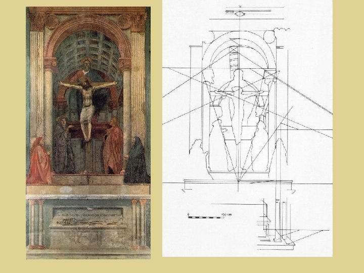 Masaccio La Santísima Trinidad con la Virgen, San Juan y dos donantes 1425 Fresco, Sta. María Novella, Florencia