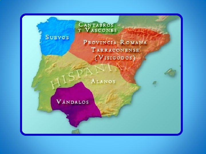 -Los Visigodos llegan aliados a los romanos (año 416) Siglo V -Expulsan a los vándalos y dominan a los alanos (año 429) - Eurico se independiza de Roma (año 475) Reino Visigodo (capital en Toledo)