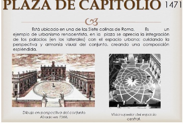La incorporación de la perspectiva como instrumento del proyecto del edificio y de la obra de arte. El diseño de los edificios se hace a partir de una serie de reglas y principios matemáticos reconocibles por el observador en la armonía del espacio conseguido
