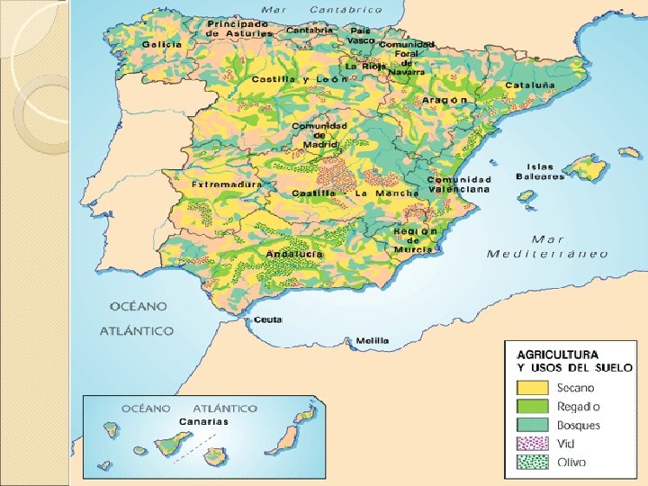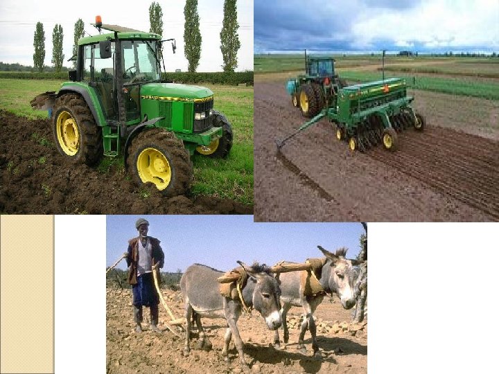 2. 4. Elements del paisatge agrari: tipus d’activitats agràries § Segons l’aprofitament del sól Agricultura intensiva: -Llocs molt poblats, on la terra és escassa i cara. - Propietats petites - Màxima producció en el mínim espai Agricultura extensiva -Produir molt a preus baixos - Grans extensions de terreny § Agricultura extensiva § Agricultura Intensiva
