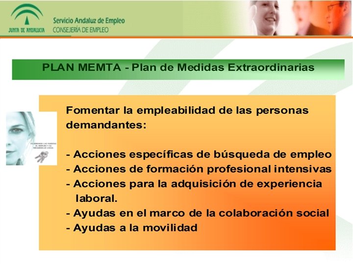 Incentivos para la creación de Servicios del SAE empleo de calidad. Ayudas al Empleo Estable de: jóvenes, mujeres, personas con discapacidad y colectivos con especiales dificultades de inserción. Incentivos a Proyectos de Interés Social para facilitar experiencia profesional a personas desempleadas. Fomento e Igualdad en el Empleo