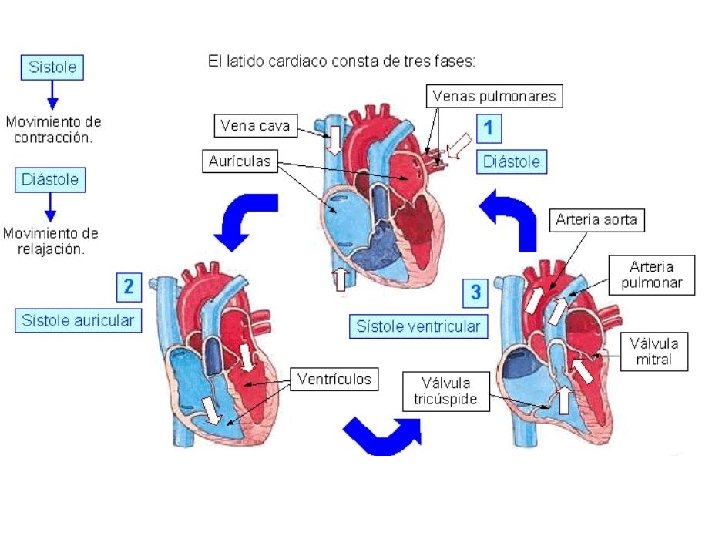 Fases del corazón (latido cardíaco) Sístole y Diástole (Contracción) (Relajación)