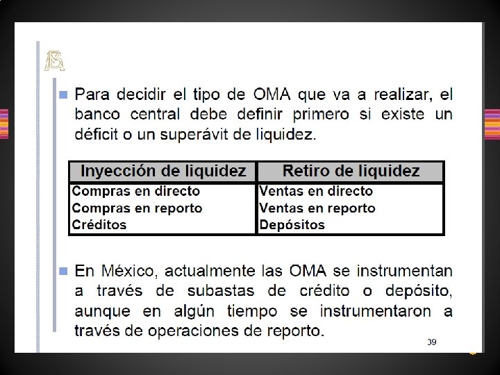 Herramientas de control monetario ENCAJE LEGAL Se refiere a la fracción obligatoria y mínima (requerida por la autoridad) de los depósitos de los ahorradores que los bancos comerciales deben mantener como reservas para poder atender los retiros de los depositantes. Es decir la proporción de los depósitos que los bancos no pueden prestar. El encaje legal es un requerimiento que el banco central puede hacer a los bancos y que generalmente se deposita en el banco central. En México no existe encaje legal