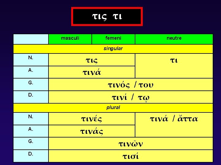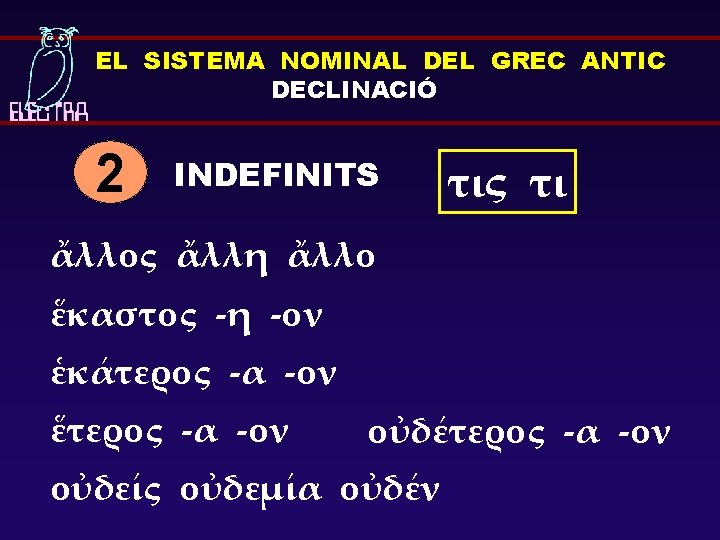 EL SISTEMA NOMINAL DEL GREC ANTIC DECLINACIÓ 1 2 ELS INTERROGATIUS ELS INDEFINITS