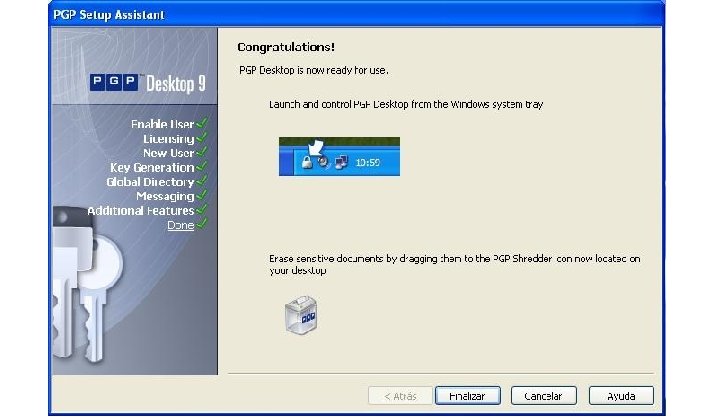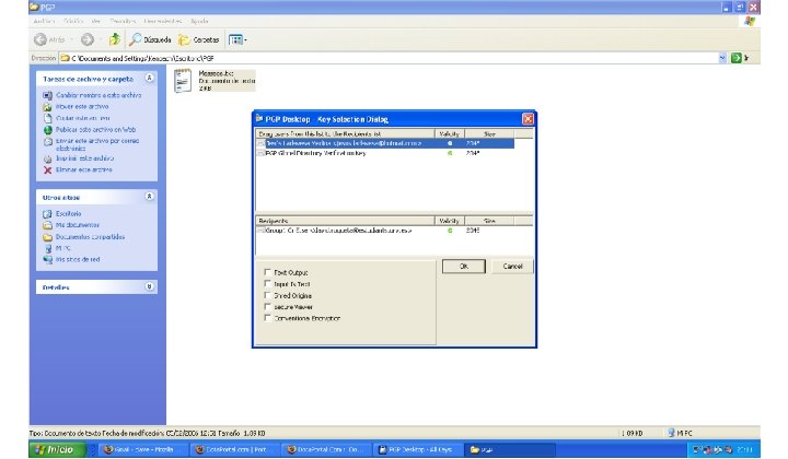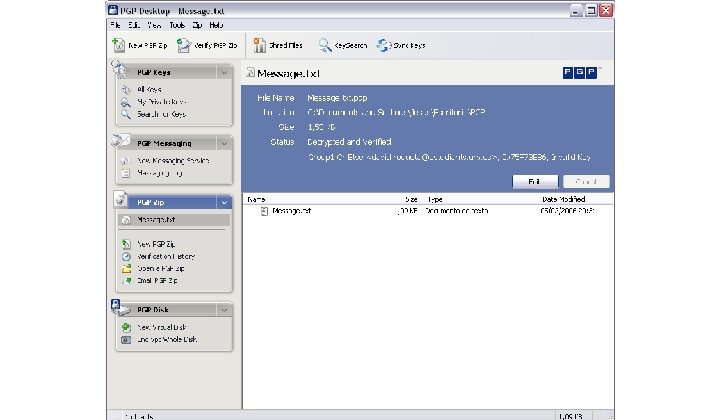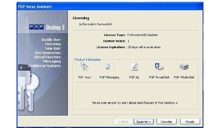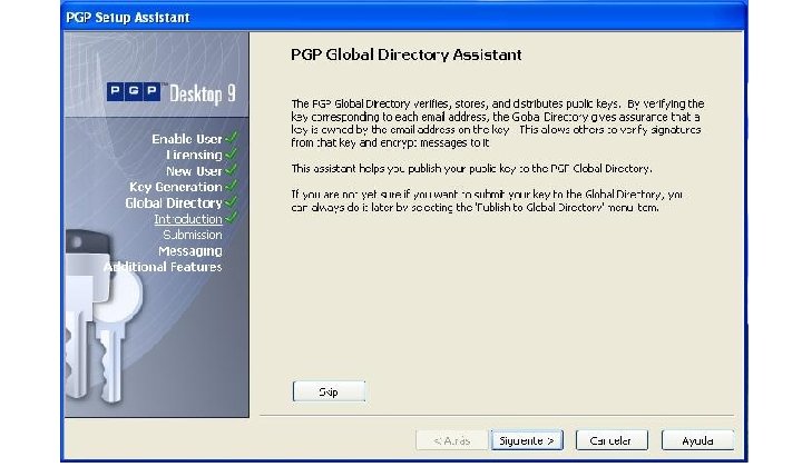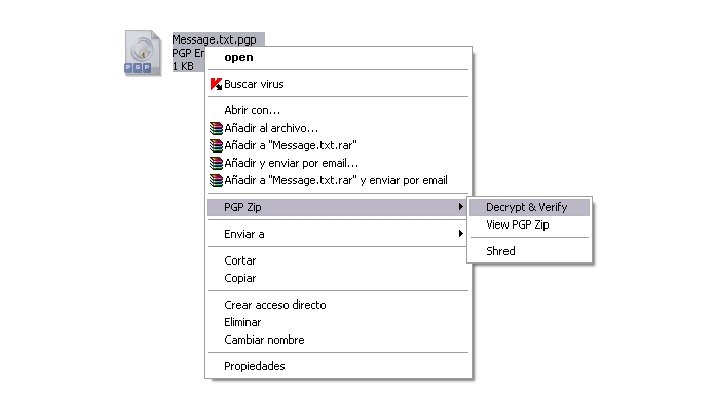 Software PGP 9. 0 • Facilita el uso del sistema PGP para la mayoría de sistemas operativos. • Proporciona herramientas para enviar e-mails cifrados y firmados, ficheros comprimidos y otras opciones avanzadas.
