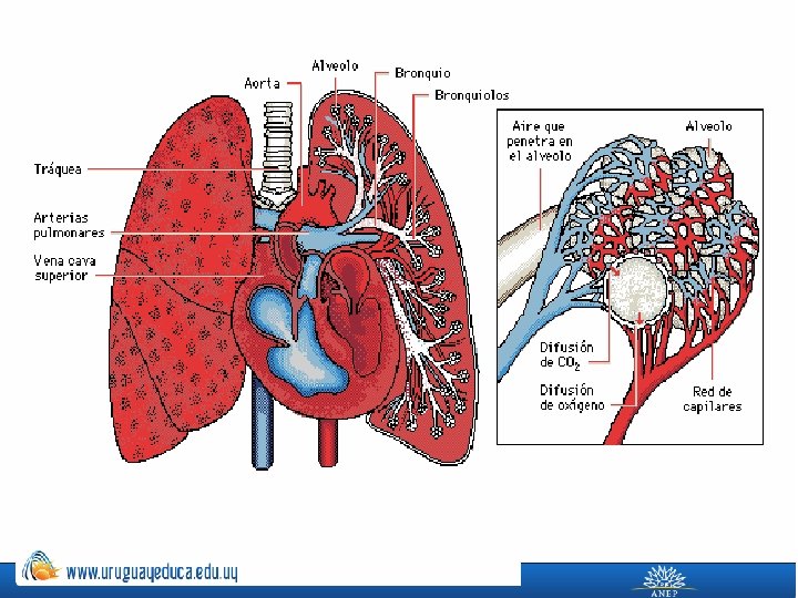 ¿Dónde y cómo se intercambian los gases? n n Los gases se mueven por difusión desde donde hay mucha concentración de ese gas, hacia donde hay menor concentración. En los pulmones, hay intercambio de gases.