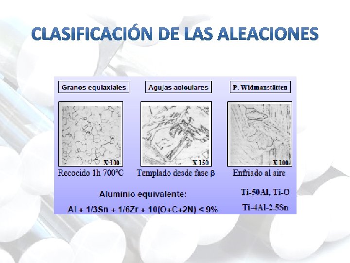 Ti con un metal α – estabilizante Ti con un metal neutro Ti con un metal β – estabilizante eutéctico