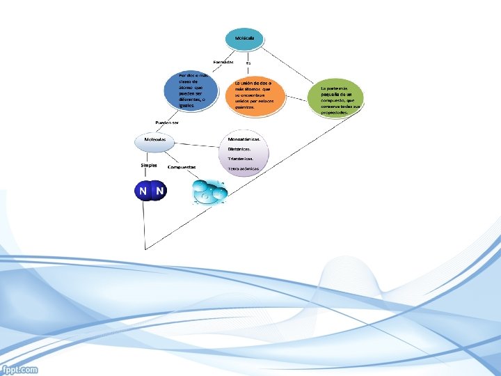 Moléculas poliatómicas: son aquellas moléculas que están compuestas por más de cuatro átomos, de uno o varios elementos, son representadas mediante el símbolo de los elementos que las componen y el número correspondiente a los átomos contenidos de los elementos. Ejemplo C 6 H 12 O 6, que es glucosa y está compuesta por 6 moléculas de carbono, 12 de hidrógeno y 6 oxígeno.