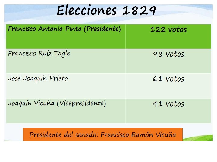 La Guerra civil de 1829 fue el resultado del descontento de los conservadores ante la promulgación de la Constitución de 1828 y las elecciones de 1829. Es la pugna entre dos grupos políticos: Los Pipiolos (liberales ) y los Conservadores (pelucones) Pipiolos • Deseaban poner en práctica las ideas del liberalismo europeo y las ideas de la Revolución Francesa. • Pretendían generar grandes cambios a nivel social y cultural. • Fueron opositores de O'Higgins y los estanqueros. • Eran intelectuales, militares. V/S Pelucones • Eran considerados como bando moderado. • Eran partidarios de una fuerte autoridad, respetar las costumbres, tradiciones. • Buscaban un sistema político que no rompiese el pasado colonial. • Eran terratenientes y aristócratas fieles a la Iglesia Católica.