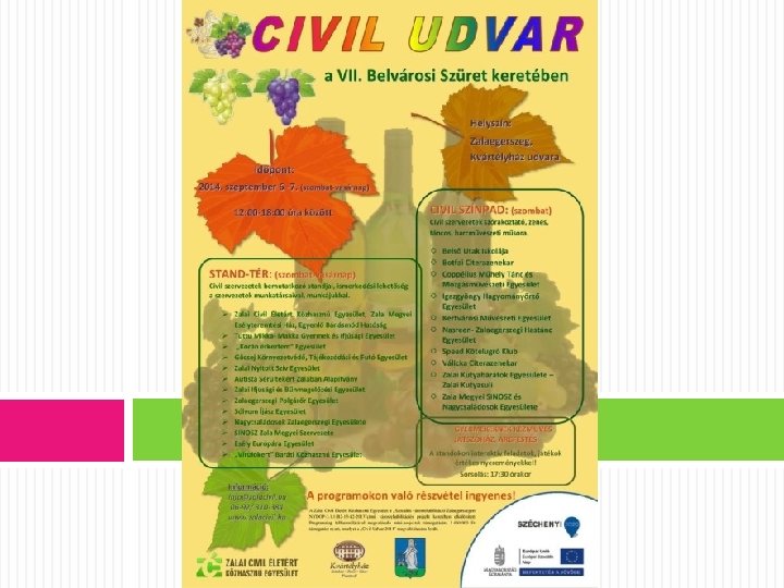 A tevékenységek hatása • • Különböző szektorok közti együttműködés erősödése Generációk közti együttműködés, megértés kialakulása Agresszivitás csökkentése a diákok között Nyitottabbá válás nehéz helyzetekre Életstratégia árnyaltabb kialakítása Szociális érzékenység növekedése Önkéntesség kultúrájának elterjedése
