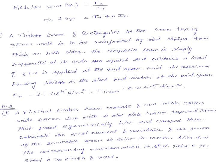 PRACTICE PROBLEM FOR THEORY OF SIMPLE BENDING 1. An I section as shown in sketch span two supports 1. 5 m apart. Determine the total load uniformly distributed on the entire span that the beam could carry in addition to a concentrated load of 8 kn at its centre in order that extreme fiber stress is limited to 800 n/mm 2 2. A simply supported timber beam of span 6 m carries a UDL of 12 kn/m over the entire span & a point load of 9 kn at 2. 5 m from the left support. If the bending stress in timber is not exceed 8 n/mm 2, design a suitable section for the beam. The depth of the beam equals twice the breadth. 3. A calculated the maximum bending stress & shear stress in a cantilever beam of span 6 m. Which carries a UDL of 5 kn/m over a distance of 4 m from the free end. The cross section of the beam is a rectangular of breadth 100 mm & depth 150 mm.