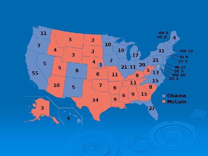 Obama vs. Mc. Cain 2008 Obama: 326 Mc. Cain 212