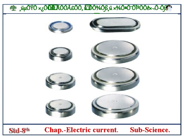 ¸üµÖŸÖ ׿Ö� Ö� Ö ÃÖÓãÖÖ, � ú´ÖÔ¾Ö߸ü ×¾ÖªÖ¯ÖϲÖÖê×¬Ö Öß, ´Ö¬µÖ ×¾Ö³ÖÖ� Ö, ÃÖÖŸÖÖ¸üÖ THE BUTTON CELL • This cell is button shaped. • It is also called a lithium cell. • It has negative pole of lithium iron phosphate and a positive pole of carbon s • The space between them is filled with a lithium salt. • This cell does not leak. • It cannot be recharged. Std-8 th Chap. -Electric current. Sub-Science.