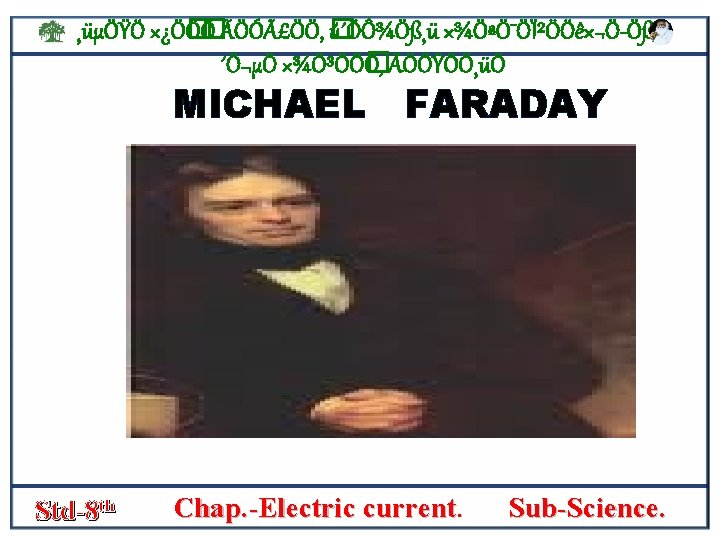 ¸üµÖŸÖ ׿Ö� Ö� Ö ÃÖÓãÖÖ, � ú´ÖÔ¾Ö߸ü ×¾ÖªÖ¯ÖϲÖÖê×¬Ö Öß, ´Ö¬µÖ ×¾Ö³ÖÖ� Ö, ÃÖÖŸÖÖ¸üÖ ELECTRO MAGNETIC INDUCTION • If there is change in the magnetic field associated with a coil of wire , elecric s current begins to flow through the coil. Such a current is called an induced current. Std-8 th Chap. -Electric current. Sub-Science.