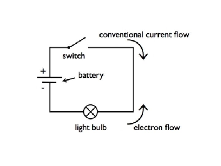 When a battery is connected to a conductor; • One end of the conductor becomes positive, the other negative • Excess positive charge at one end, excess negative charge at other end • This causes an electric field to form, directed away from positive towards negative • Charges in the wire will experience a force due to this field • Free electrons in the wire will tend to move (in direction opposite to the field) • This movement of charge is called ELECTRIC CURRENT