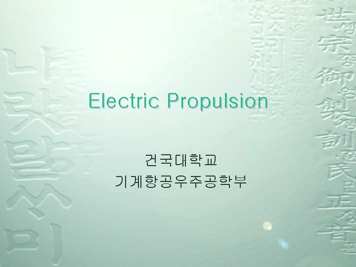 목차 Electric Propulsion 의 개요(이론) Electric Propulsion의 종류 3가지 영역별 Propulsion의 개요 영역별 Propulsion의 특징 Reference