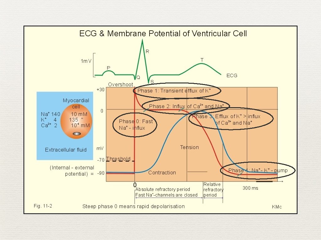 Action Potential ✦ Phase 0 ✦ Stimulation of the myocardial cell ✦ Influx of sodium ✦ The cell becomes depolarize ✦ Inside the cell = +20 m. V