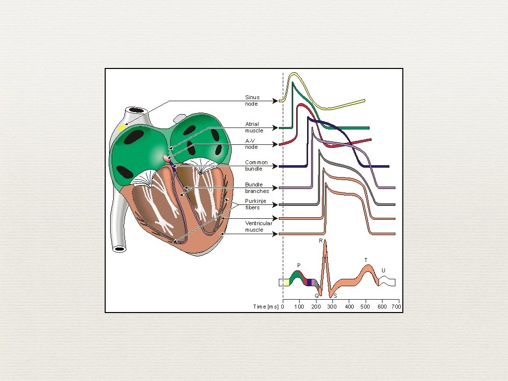 ECG Waves ✦ QT interval ✦ from beginning of QRS to the end of the T wave ✦ ventricular repolarization ✦ length varies with heart rate (table 2. 1) RR (sec) HR (bpm) QT (sec) 1. 00 60 0. 43 0. 40 150 0. 27