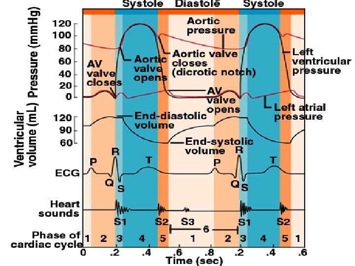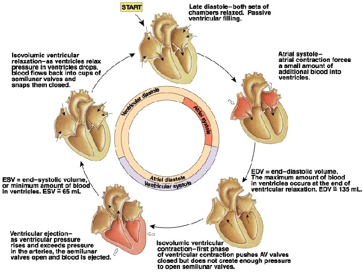 Overview of Volume Changes End-systolic volume (ESV) 60 ml Passively added to ventricle during atrial diastole 30 ml Added by atrial systole 40 ml Total: end-diastolic volume (EDV) 130 ml Stoke volume (SV) ejected by ventricular systole -70 ml End-systolic volume (ESV) 60 ml Both ventricles must eject same amount of blood