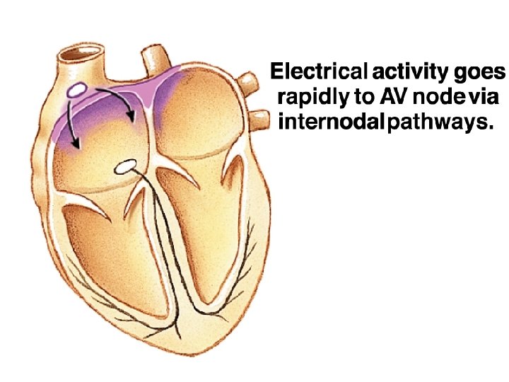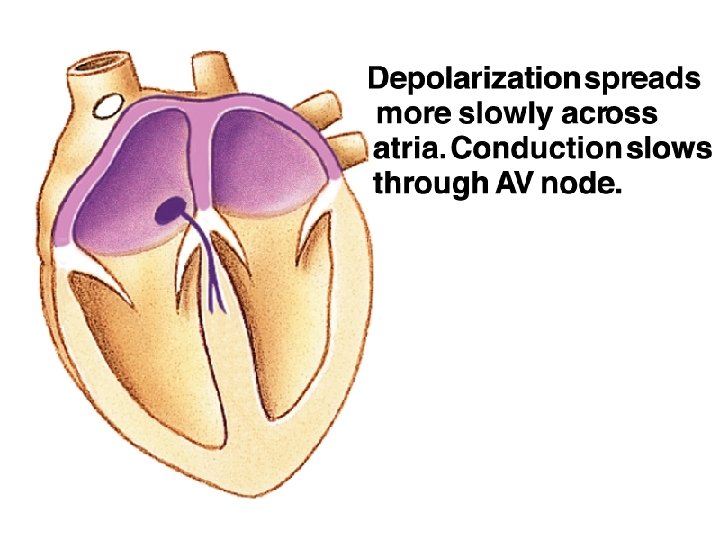 • If the electrical signals from the atria were conducted directly into the ventricles, the ventricles would start to contraction at the top. Then the blood would be squeezed downward and trapped at the bottom of the ventricle. • The apex to base contraction squeezes blood toward the arterial opening at the base of the heart. • The AV node also delays the transmission of action potentials slightly, allowing the atria to complete their contraction before the ventricles begin their contraction. This AV node delay is accomplished by slowing conduction through the AV node cells.