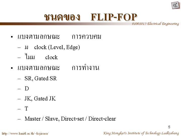 ELECTRICAL ENGINEERING ครงท 4 ฟลปฟลอป (Flip – Flop) 1