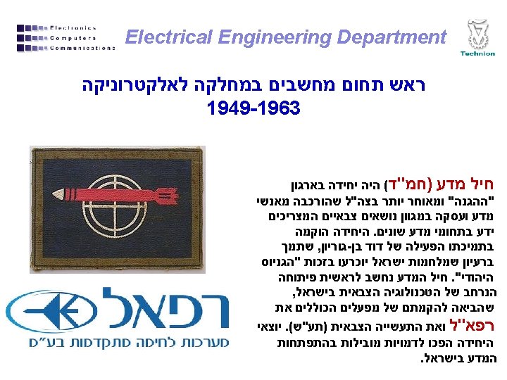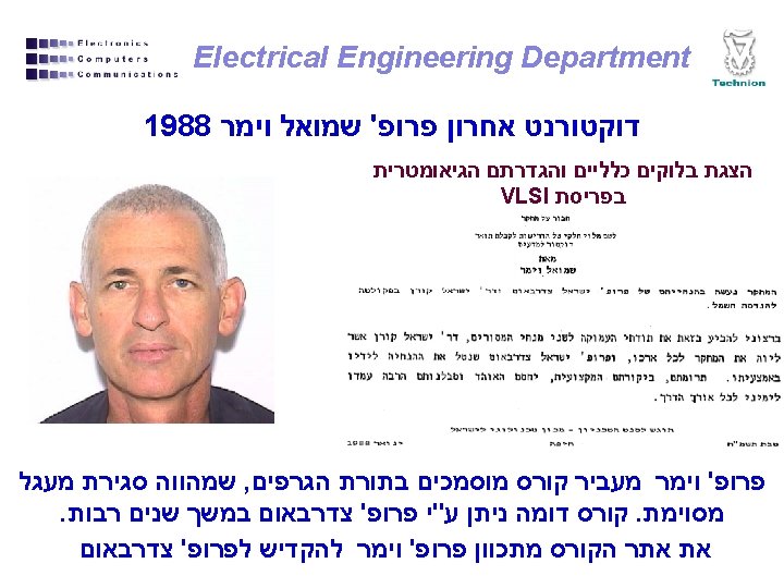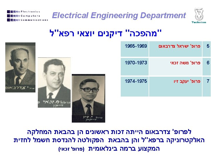 Electrical Engineering Department טכניון הנדסת חשמל 1963 -1978 פרופסור 1978 -2006 פרופסור אמריטוס