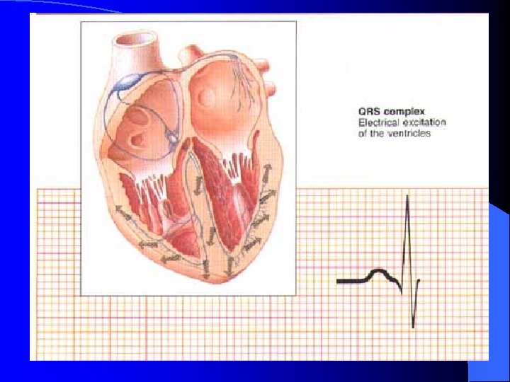 The QRS Complex l l l The QRS complex represents ventricular depolarization. The Q wave is the first negative deflection. It should not be greater than 1 mm wide or larger than 1/3 height of R wave. The R wave is the first positive deflection after the Q wave. The S wave is the first negative deflection after the R wave The normal QRS complex should be <. 12 sec.