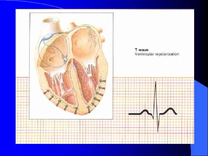 The T wave l The T wave represents ventricular repolarization. l It is usually positive, but can be negative or biphasic. l It is usually the same polarity as the QRS complex.