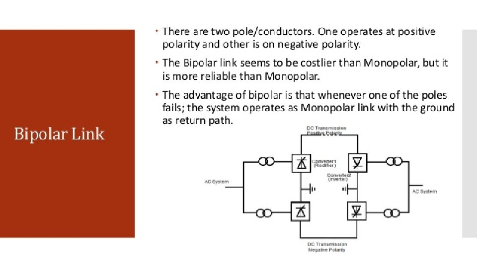Cont… HVDC also allows transfer of power between grid systems running at different frequencies, such as 50 Hz and 60 Hz. This improves the stability and economy of each grid, by allowing exchange of power between incompatible networks. Better voltage utilization rating
