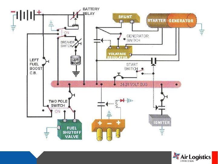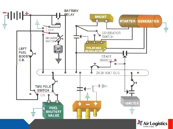 BATTERY RELAY BATTERY SWITCH 28 VDC BUS STARTER GENERATOR STARTER SWITCH EXT. POWER RELAY LINE CONTROL RELAY STARTER RELAY GENERATOR RESET SWITCH VOLTAGE REGULATOR LOAD METER EXTERNAL POWER RECEPTACLE