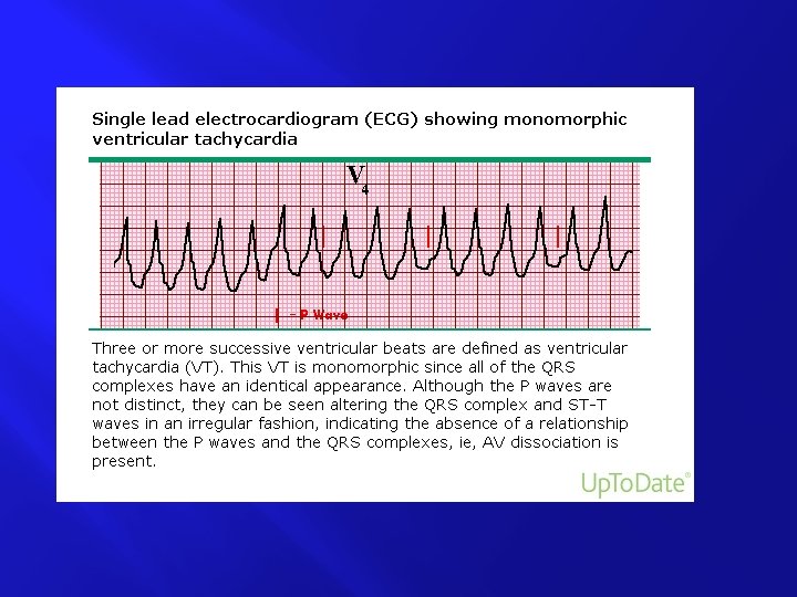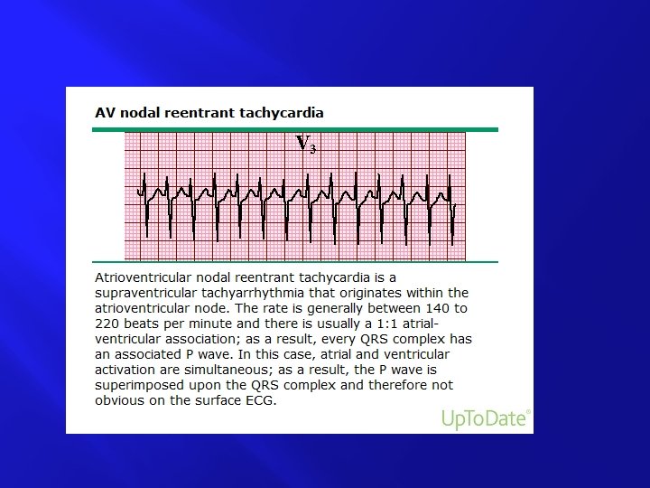 � � � � � Narrow–QRS-complex (SVT) tachycardias (QRS< 0. 12 second), in order of frequency ● Sinus tachycardia ● Atrial fibrillation ● Atrial flutter ● AV nodal reentry ● Accessory pathway–mediated tachycardia ● Atrial tachycardia (including automatic and reentry forms) ● Multifocal atrial tachycardia (MAT) ● Junctional tachycardia (rare in adults) Wide–QRS-complex tachycardias (QRS ≥ 0. 12 second) ● Ventricular tachycardia (VT) and ventricular fibrillation (VF) ● SVT with aberrancy ● Pre-excited tachycardias (Wolff-Parkinson-White [WPW] syndrome) ● Ventricular paced rhythms