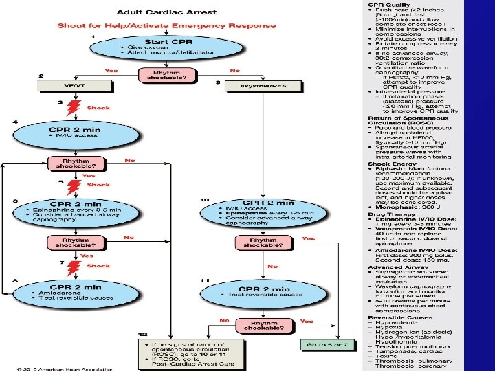 Treatable Causes of Cardiac Arrest: The H’s and T’s � � � H’s Hypoxia Hypovolemia Hydrogen ion -acidosis Hypo-/hyperkalemia Hypothermia T’s Toxins Tamponade Tension pneumothorax Thrombosis,