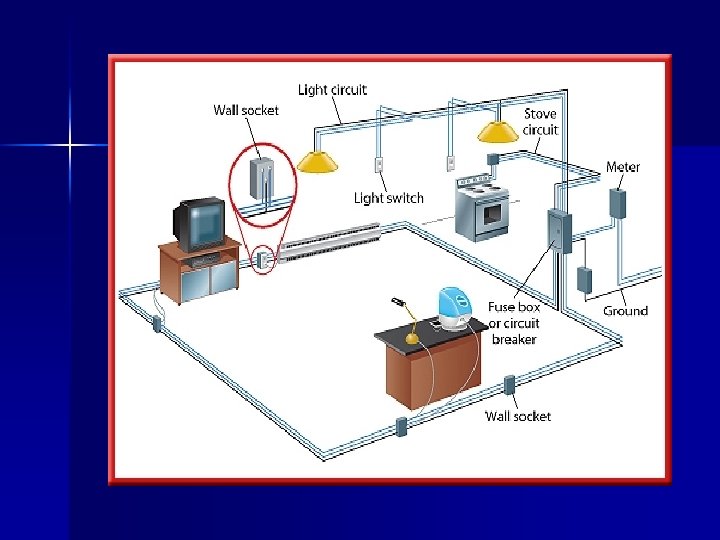 Example n n n Hair dryer plugged into wall outlet Generator at power plant produces voltage difference Dryer and circuit in house contain conducting wires to carry current Hair dryer turns electrical energy into thermal energy and mechanical energy Unplug hair dryer opens circuit and breaks path of current