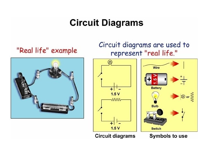 19. 1 Electric Circuits § When drawing a circuit diagram, symbols are used to represent each part of the circuit. § These electrical symbols are quicker and easier to draw than realistic pictures of the components.