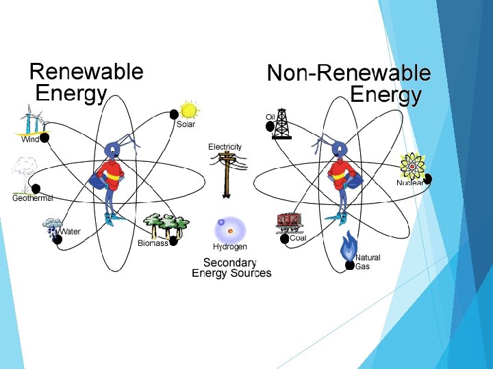 XIII. Nonrenewable and Renewable Resources Used to make Electricity Nonrenewable § § Cannot be replaced by natural processes as quickly as they are used. Examples: crude oil, natural gas, coal, and uranium Coal, crude oil, and natural gas -fossil fuels (formed from the buried remains of plants and animals that lived millions of years ago. ) Uranium ore, a solid, is mined and converted to a fuel used at nuclear power plants. Renewable § Energy source that is replaced by natural processes as fast as humans consume the resource. § Examples: solar, hydroelectric, tidal, wind, geothermal, biomass