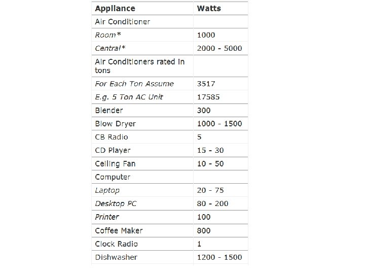 Imagine an appliance with 200 volts and 1. 5 amps of current. What is the power? Power = voltage x current Power = 200 volts x 1. 5 amps Power = 300 WATTS